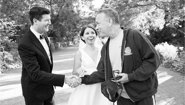 1993年,还在南卡罗来纳州拍摄《阿甘正传》的他就曾在新娘走过侧廊时介绍起了自己。新娘事后回忆道:“他走过来说,‘嘿,我是汤姆·汉克斯!祝你新婚快乐!’然后他还拥抱了我,并且亲吻了我的脸颊!”