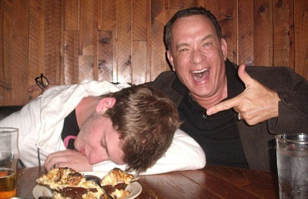 2012年,他就和粉丝拍了一套搞怪合影,照片中粉丝装作醉倒在餐馆里,汉克斯则在身边摆出各种夸张表情和动作。