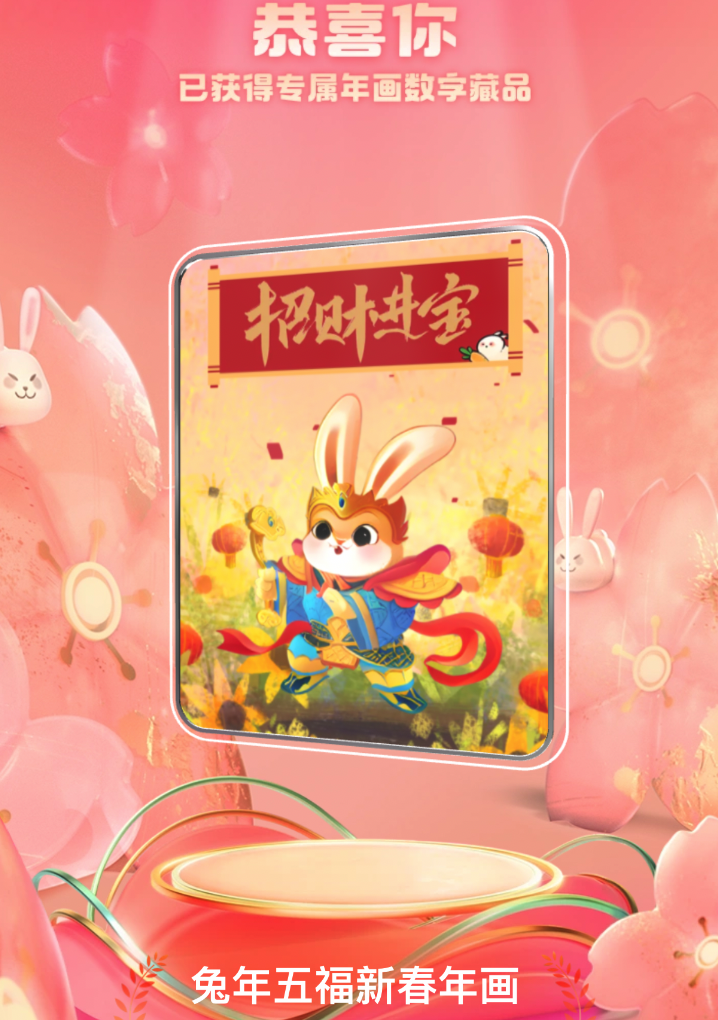 与此同时“AI年画”的创作次数也是不被限制的,也给予了用户更多的选择空间。当用户挑选到满意的画作时,还可以生成自己专属数字藏品。支付宝联合鲸探数字藏品平台为每位用户提供了一款免费的数字藏品。理论上,只要是拥有支付宝的用户都可以免费拥有一款属于自己创造的,专属年画数字藏品。