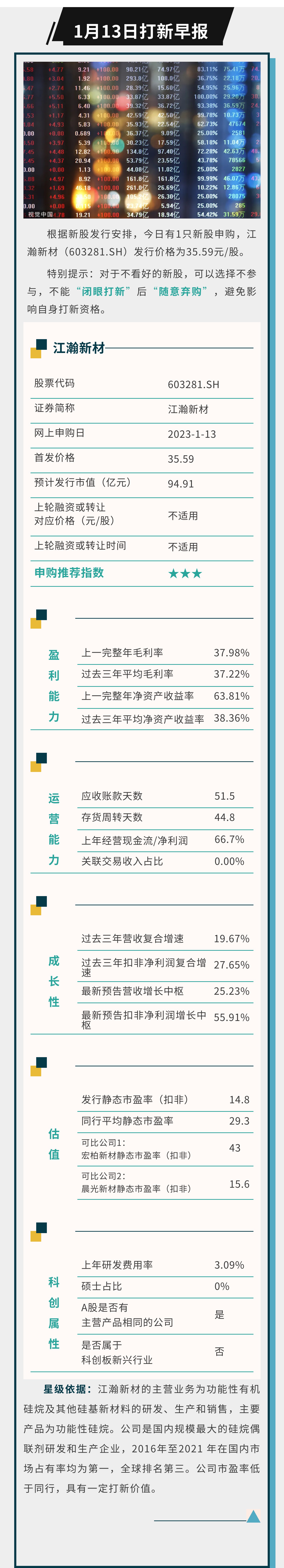 打新早报 | 硅烷偶联剂龙头上市,江瀚新材值得申购么?