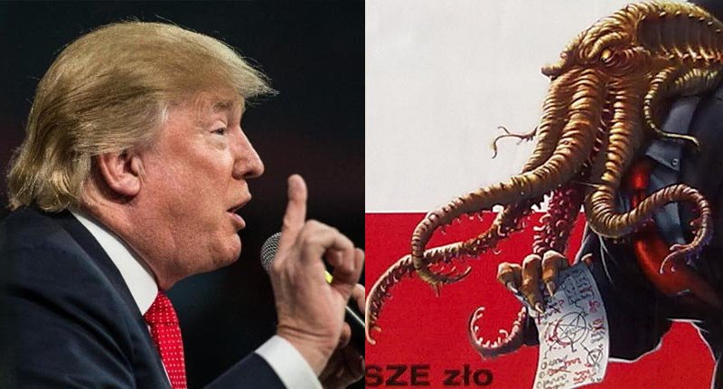 本月早些时候,金开玩笑说:“特朗普实际上是恶魔克鲁苏(美国恐怖小说作家霍华德·洛夫克拉夫特笔下的恐怖形象),他那可笑的发型其实一点也不可笑,那里藏着致命的触手”。上周日他又提到:“德克萨斯州或许会选择特朗普,但是他们会这样形容特朗普这种人----‘他太矮了,他会戴上一顶大礼帽然后在一只响尾蛇底下爬行’。”