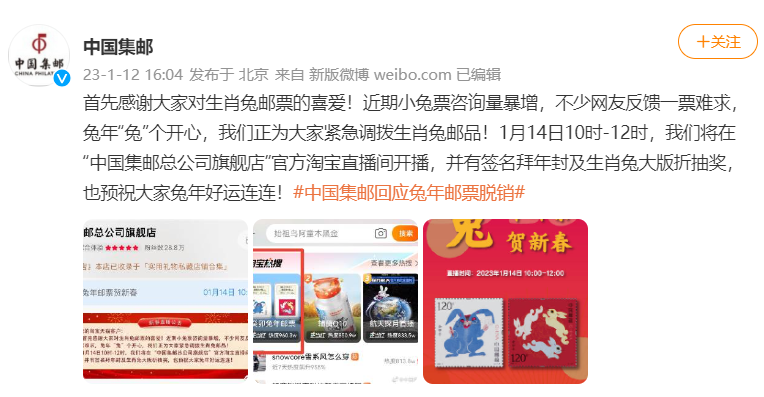 中国集邮回应兔年邮票脱销:正紧急调拨