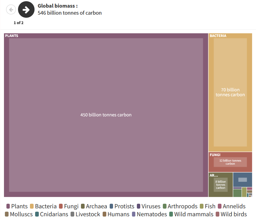 图片来源:PI France 注:全球总生物质量为5460亿吨(碳重量),其中植物占4500亿吨,细菌和真菌分别占700亿吨、120亿吨。