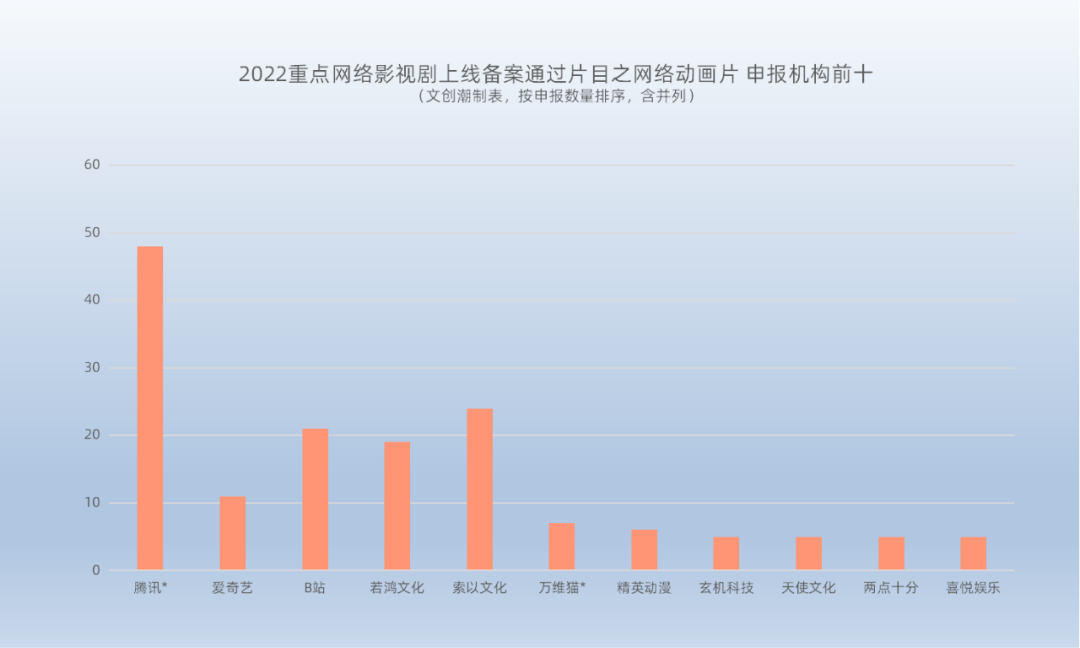 腾讯与腾讯系公司,在打造国产动画的数量上领先,B站其次;