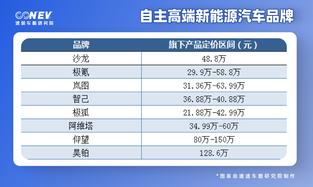 行业内,目前,自主高端新能源品牌聚集了沙龙(长城)、极氪(吉利)、岚图(东风)、智己(上汽)、极狐(北汽)、阿维塔(长安)、仰望(比亚迪)、昊铂(广汽)等。新能源汽车高端市场进入“百花齐放”时代。