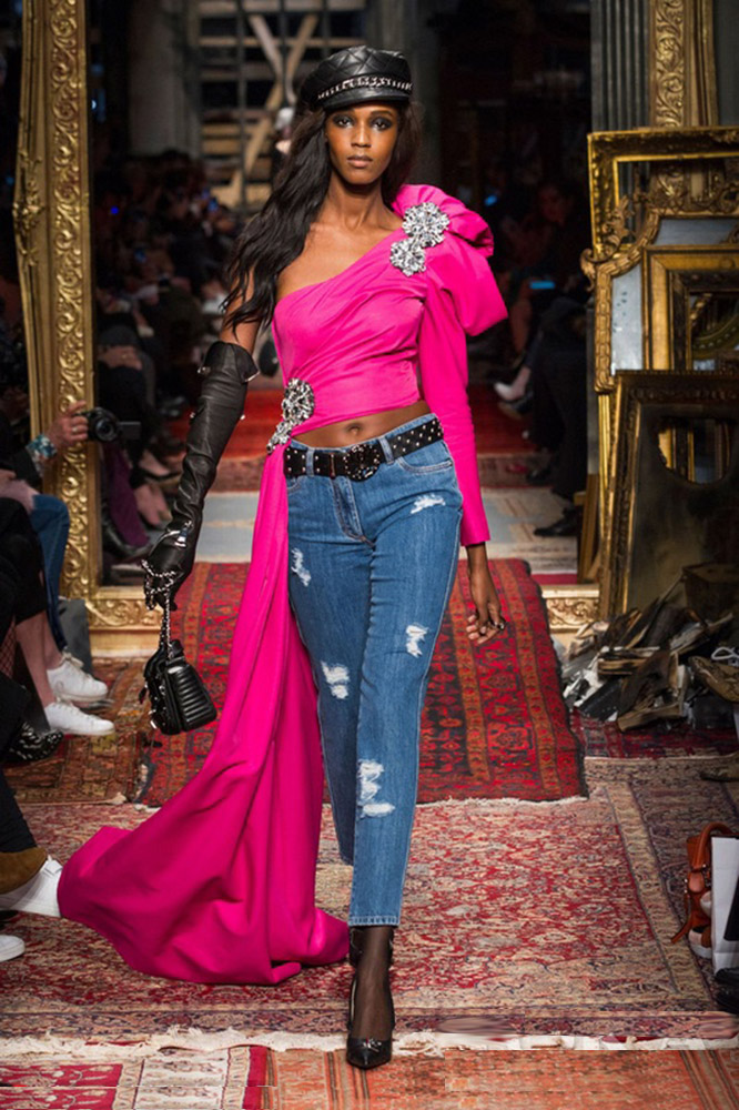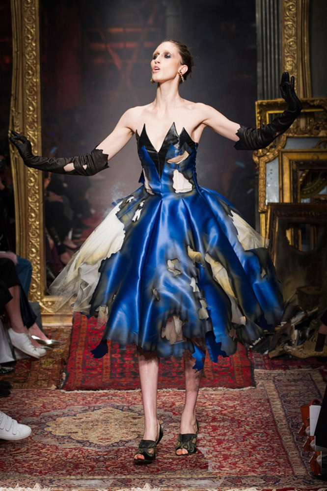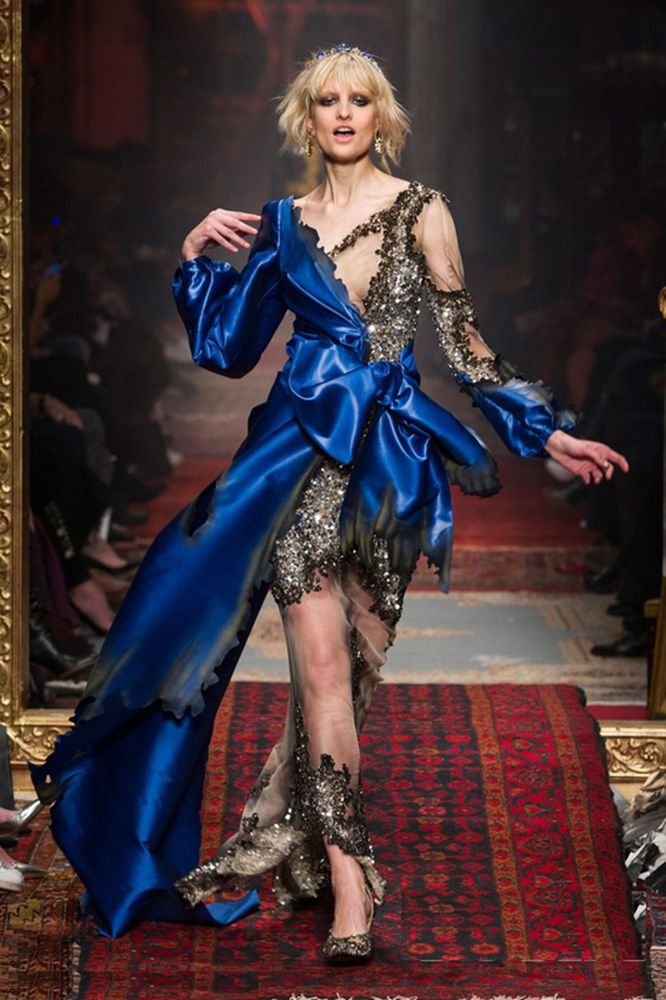 在2016年Moschino秋冬季的时装秀上,你会发现这个品牌玩味的态度从不曾减少。且时隔多年,仍溢满了80年代的经典元素:朋克气息十足的皮革和铆钉、经典的皮革海军帽、交际舞会的蓬蓬裙等。有这些还不够好玩,当模特穿着像是烧焦过后的裙子跳着舞冒着烟走过,用水晶灯绕满的裙摆走起路来也叮当作响……