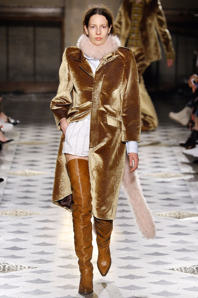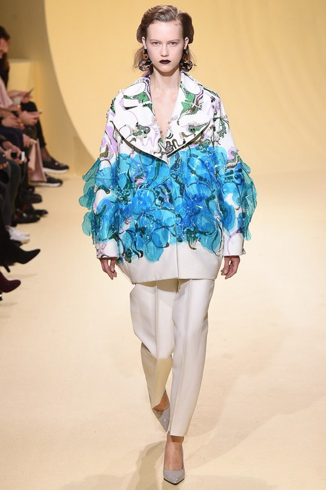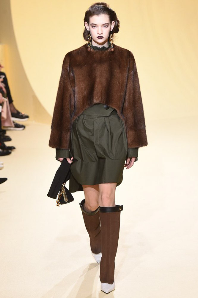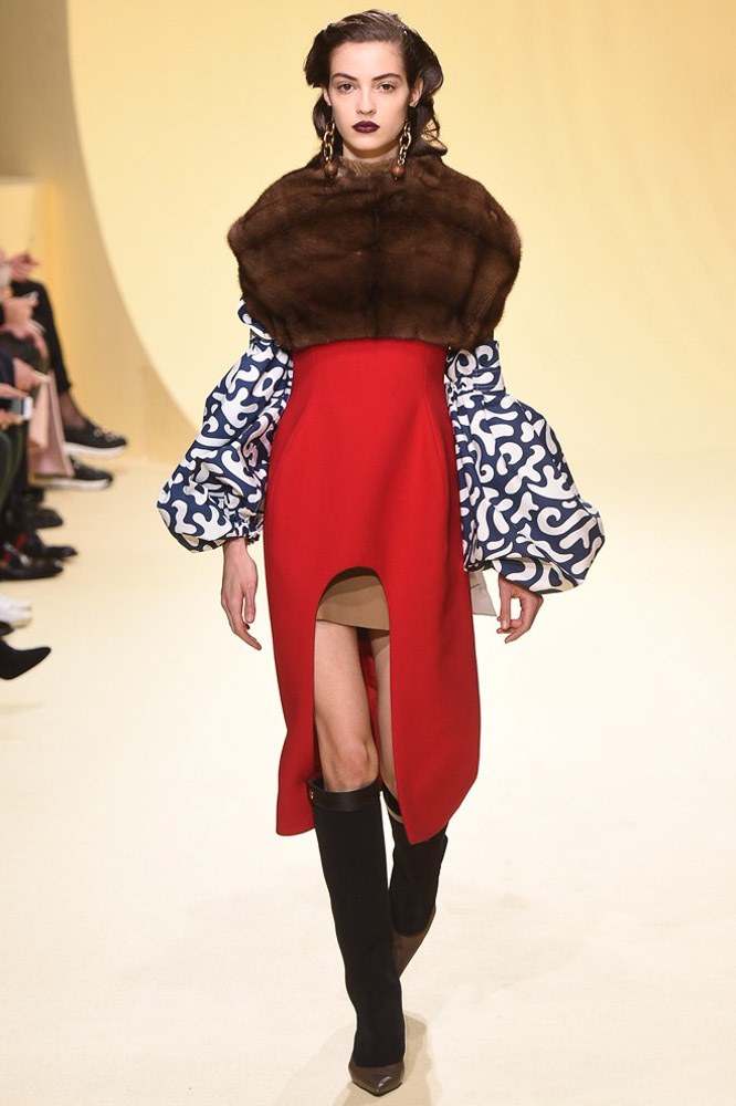 回到服装本身,Marni的秋冬季加入了很现代化的气息,虽然灯笼袖、短上衣或是皮草的元素随处可见,但通过简化的方式,混合了新兴材质,衣服变得非常时髦且似乎更让年轻人感觉欢喜。