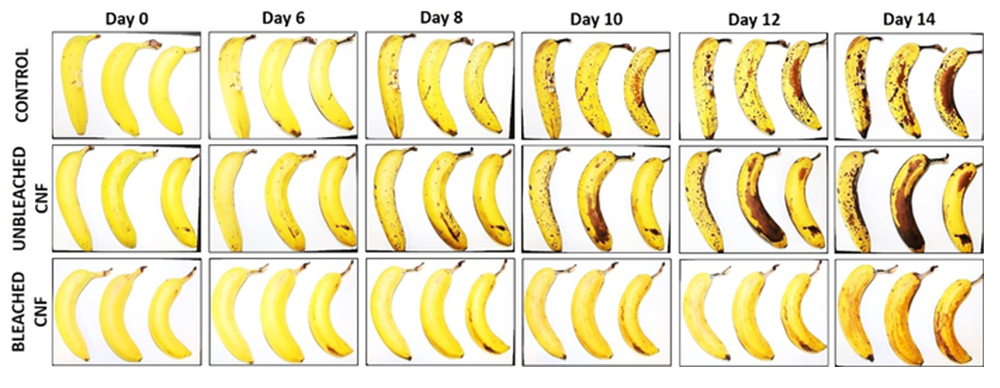 有和没有 EMPA 涂层的香蕉在保质期测试中的表现,图片来源:food ingredients first