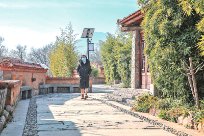 河南安阳市,游客在红旗渠畔的庙荒村中散步。新华社发