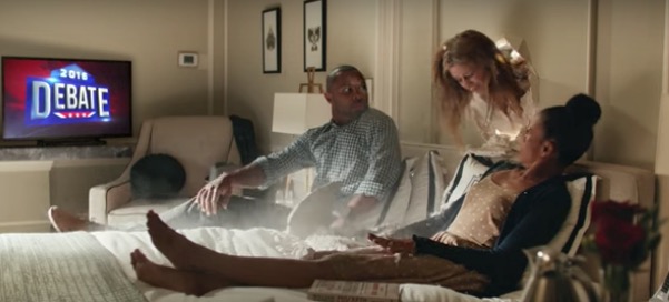 “好的东西值得争取。要明智地选择下一个司机。”结尾的广告语写道。这支在电视辩论当天播出的广告,意在告诉观众慎重使用手中的投票权。片中的不少细节都体现了大选元素,比如片头散落在地上的竞选徽章、被破墙而入客房里的电视画面,正好在播电视辩论。