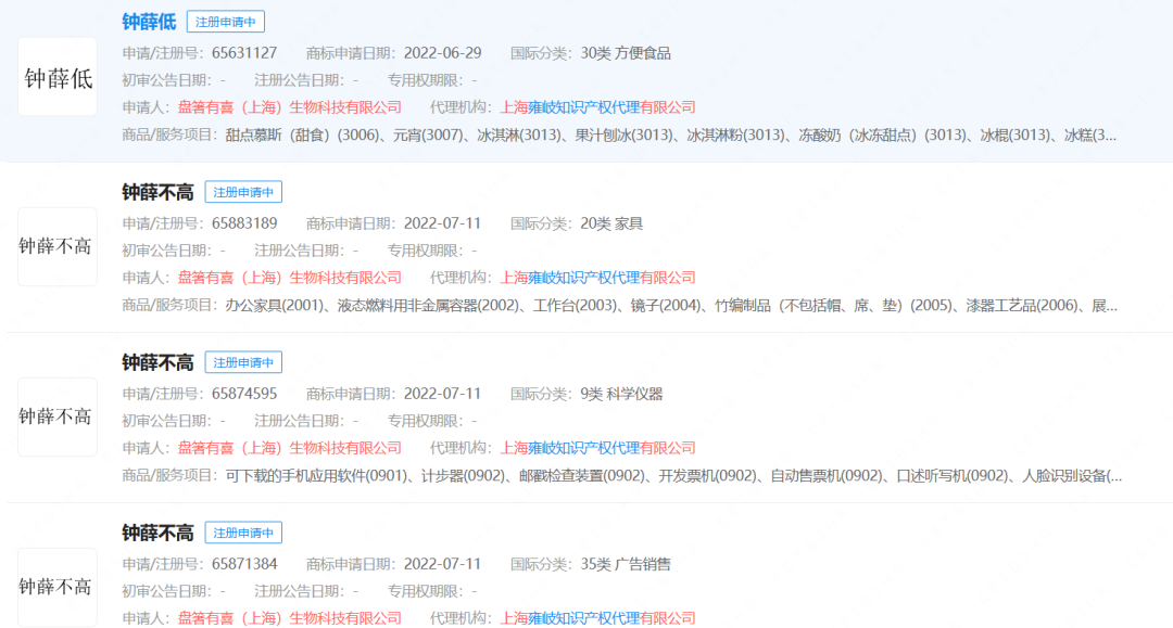 关于平价雪糕市场的布局,从去年开始,已有些迹象。钟薛高从去年10月开始申请了钟薛不高、钟薛低、钟薛小高、钟薛步步高等商标,看得出来,钟薛高这次想要从最直观的名字开始就让消费者意识到子品牌的定位。