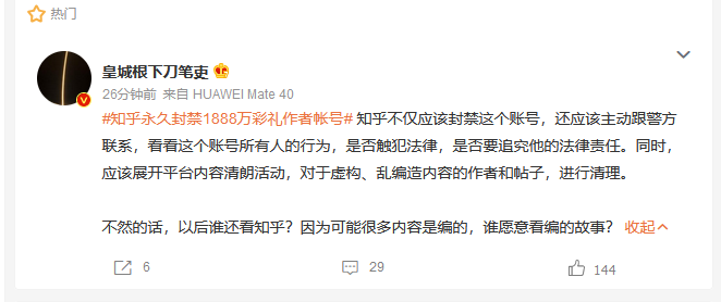 也有网友表示知乎应该承担相应的社会责任,对平台里面虚构、乱编的内容进行清理。