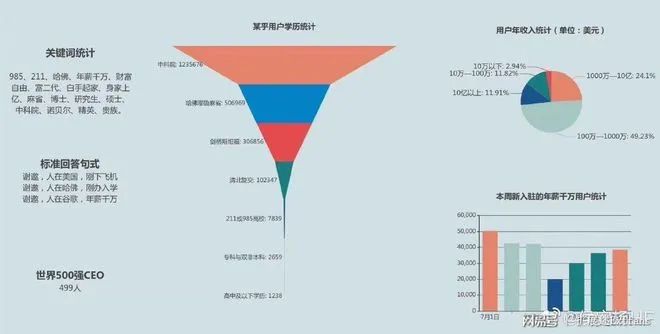 此前网上流传了一张“某乎学历统计图表”,中科院的有1235676位,哈佛耶鲁麻省有506969位。至于985、211,在知乎上更是随处可见。