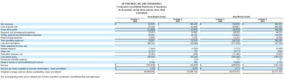 2022年第3季度,Beyond meat净收入为8250万美元,同比下降22.5%;毛利为亏损1480万美元,净亏损为1.017亿美元。