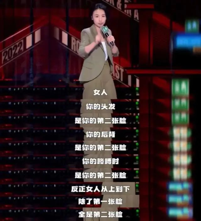 “女人,你的头发是你的第二张脸;你的后背是你的第二张脸;你的胳膊肘是你的第二张脸。反正女人从上到下,除了第一张脸,全是第二张脸。”