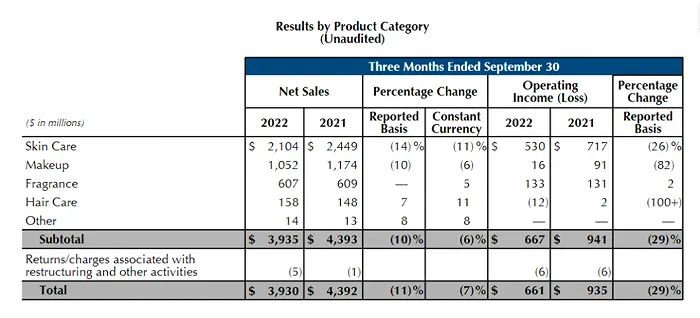 世界化妆品巨头雅诗兰黛集团公布的财报数据显示,2023财年第一季度,净销售额同比下降11%,净利润大幅缩水29%。