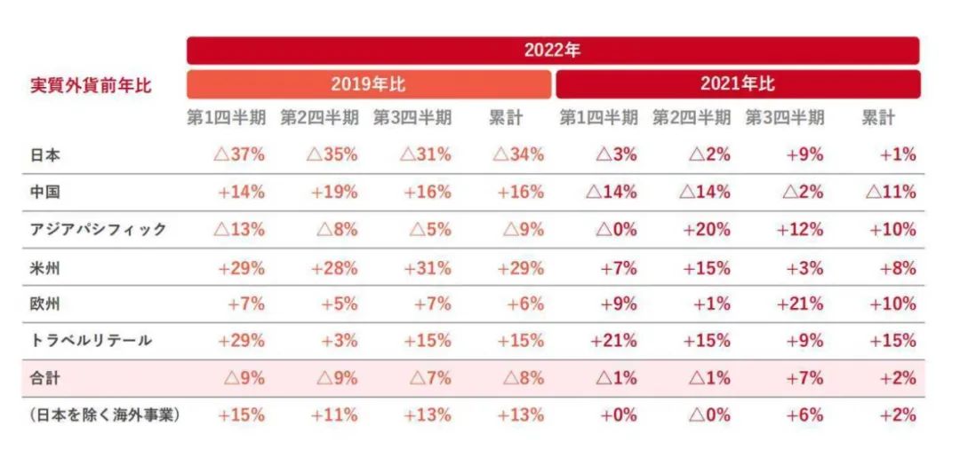 日本资生堂集团的财报数据也显示,2022年前三季度,中国市场累计销售额为1719亿日元(约合人民币85.16亿元),同比下滑9.9%,经营亏损持续扩大至87亿日元(约合人民币4.31亿元)。
