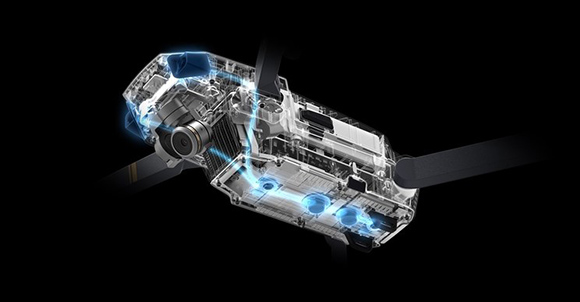 基于 FlightAutonomy 系统,Mavic 拥有非常好的稳定性、可操控性和安全性。FlightAutonomy 是 Mavic 的大脑与神经系统,由前视、下视各一对视觉摄像头、主相机、GPS/GLONASS 双模卫星定位系统、超声波模组、传感器冗余和 24 颗高性能计算内核等部件所组成。