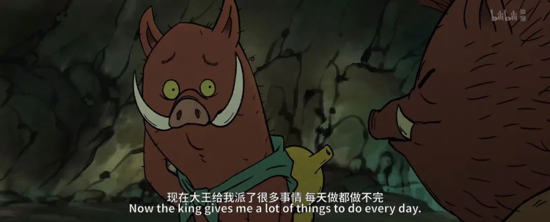 主线叙事很有职场内味儿。小猪见不到最大的妖怪,只能被中层妖怪吆五喝六。这就相当于,你在一个公司呀,没有面见大boss的机会,只能被中层领导拿捏。尤其是熊精传话:“干得好可以喝一碗唐僧肉的汤。”小妖怪们立刻个个精神抖擞,像极了打工人被领导画饼的样子。