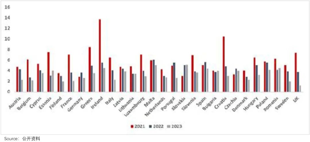 有机构通过对经济影响的拟合分析显示,2022-2023年,英国、法国及意大利等主要欧洲经济体,将持续受到供给瓶颈和地缘冲突(俄乌战争)的显著影响。