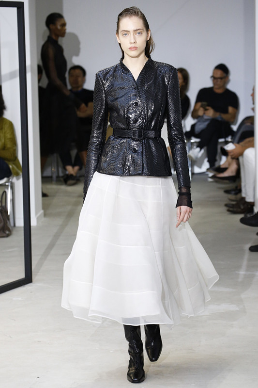 在以黑白色调为主的系列中,皮革短裙显然是属于品牌在1998年至2001年阶段的记忆,一些柔美的连衣裙和为数不多的礼服保持了他在Rochas和Nina Ricci时期的审美方式,哥特情节中带有一丝浪漫。在纽约为Theory工作的四年经历让其终于意识到消费者才是首要的。新系列绝大部分的款式在设计风格上保持了Theory式的简洁,即便细节之处带有设计师自己的情趣。如果说浪漫色彩是其职业生涯的绝大部分,那么这个系列大部分款式都可以让这份浪漫穿梭于女性消费者的每一天,而不再是某个光彩亮丽的特定时刻。新系列的定位依旧是“更高端的高级成衣”,但是目前该系列的定价还未对外公布。