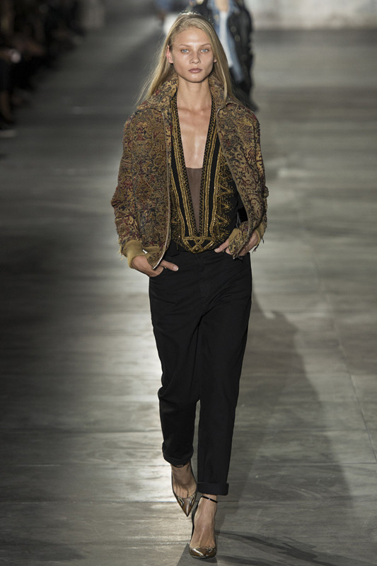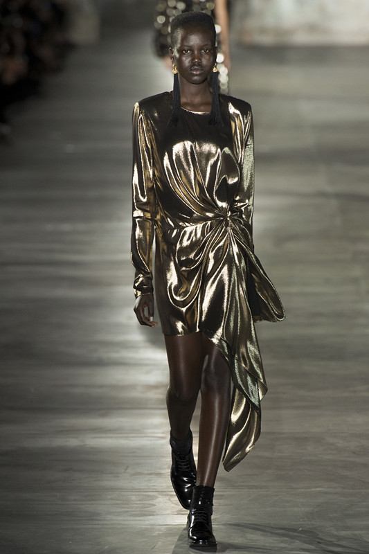 除了Olivier Theyskens,巴黎女装周第一天最让外界人士期待恐怕还是Anthony Vaccarello的Saint Laurent处女系列。发布会在巴黎前武装部举办,这里也将会在明年正式成为品牌未来的新总部。Jane Birkin带着她的两个女儿Charlotte Gainsbourg和Lou Doillon一同现身秀场头排。当然Saint Laurent的另一位创始人Pierre Bergé也没有缺席。