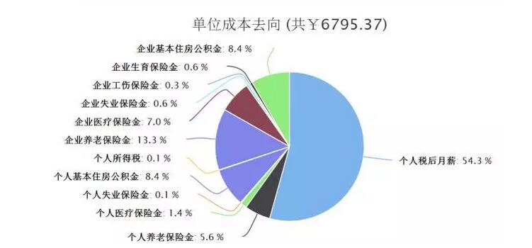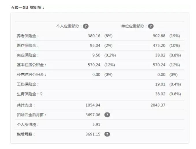 从这个图中可以看出,缴纳五险一金,不仅员工的工资会在原有的基础上少1054.94元,单位还需要额外支付成本2043.37元。