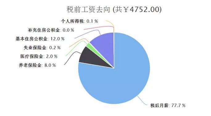 以4752元工资计算,缴纳五险一金明细如下: