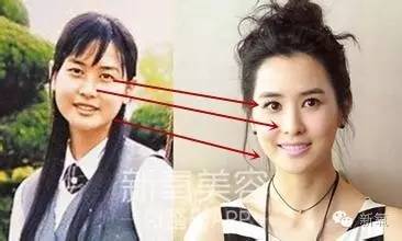 和现在对比看看,双眼皮和鼻综合是必须的了,还有正颌手术,让长脸型变短,摆脱“月亮脸”。