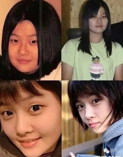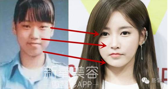 23岁出道,这之前脸已经完全修改好了,变化最明显的就是眼睛和鼻子了,纯单眼皮变成娃娃大眼,朝天的肉鼻子变成了立体的小翘鼻。
