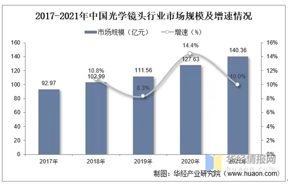 前瞻产业研究院数据显示,2015年-2020年,全球光学镜头行业市场的年复合年均增长率为22.25%,预计市场规模至2023年将达到682.8亿元。