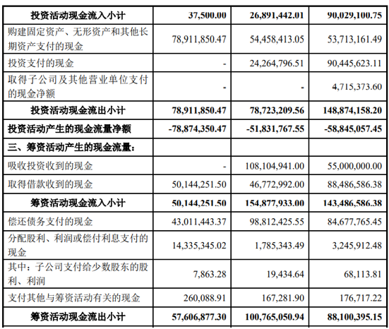 包括资本性开支在内的整体投资活动现金流出,更高达3.44亿元,算下来投资现金缺口合计2.26亿元。而靠经营取得的净现金仅可支撑1.24亿元。剩下的1个多亿,要指望外部融资。