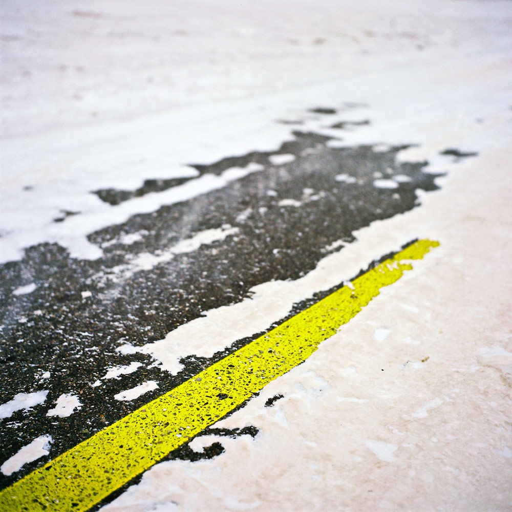 在黯淡的阳光里,班车懒洋洋地碾过薄冰和飘忽的浮雪,驶向草原,行到半路停车卸货,我下车撒了泡尿,望着空荡荡的道路,站在路边的寒风里拍下了这张照片。此后每每想起北方冬季的道路,眼前都会出现照片里的情景:雪和冰混杂着平铺在乌青的柏油路面上,被车轮碾地如同被侵蚀的海岸,只有偶尔露出的行道线指向无边的北方。