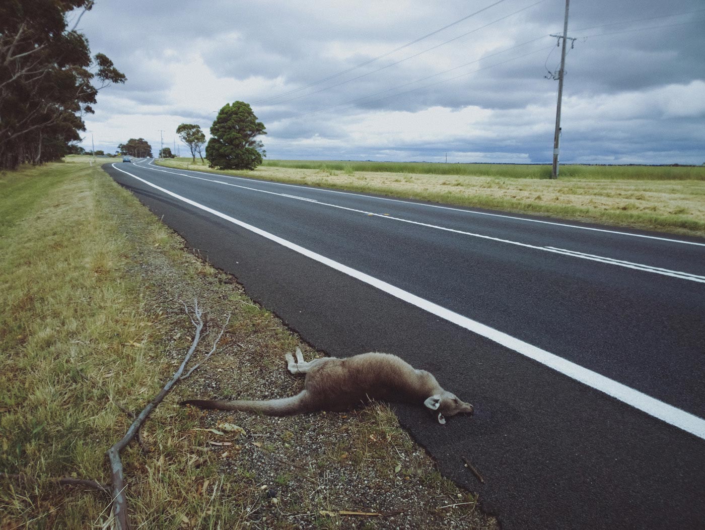 2013年底去澳大利亚,沿着大洋路开车,偶尔会遇见成群的袋鼠蹦跳前行。后来在返回墨尔本的路上发现了这只躺在路边的袋鼠尸体。