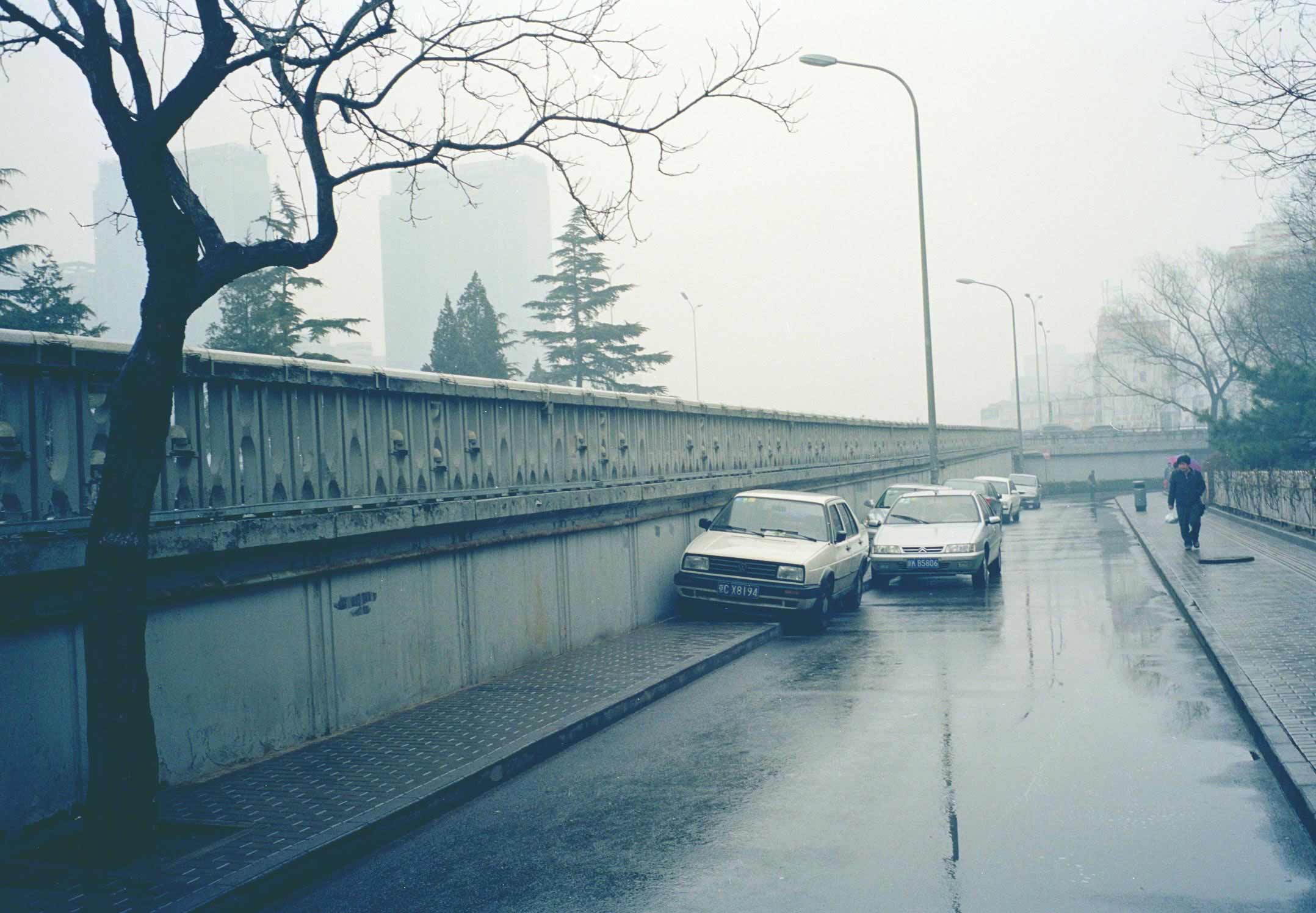 这应该是清早吧?不然怎么会有那么多车骑着马路牙子胡乱停在逆行道上,大白天他们可不敢。我猜我当时大概是因为秃树冠、泛湿的路面和孤独行走的人而按下快门的,加上阴冷的色调,确实有一些乡愁感。现在,我不知道这是哪里。