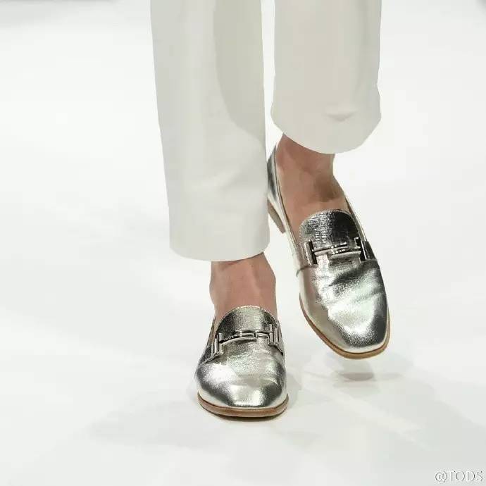 关注时尚如我,也只能告诉大家一个识别的诀窍:如果豆豆鞋的鞋舌上有交叠的T字LOGO,恭喜你,你看到了今年的新款!