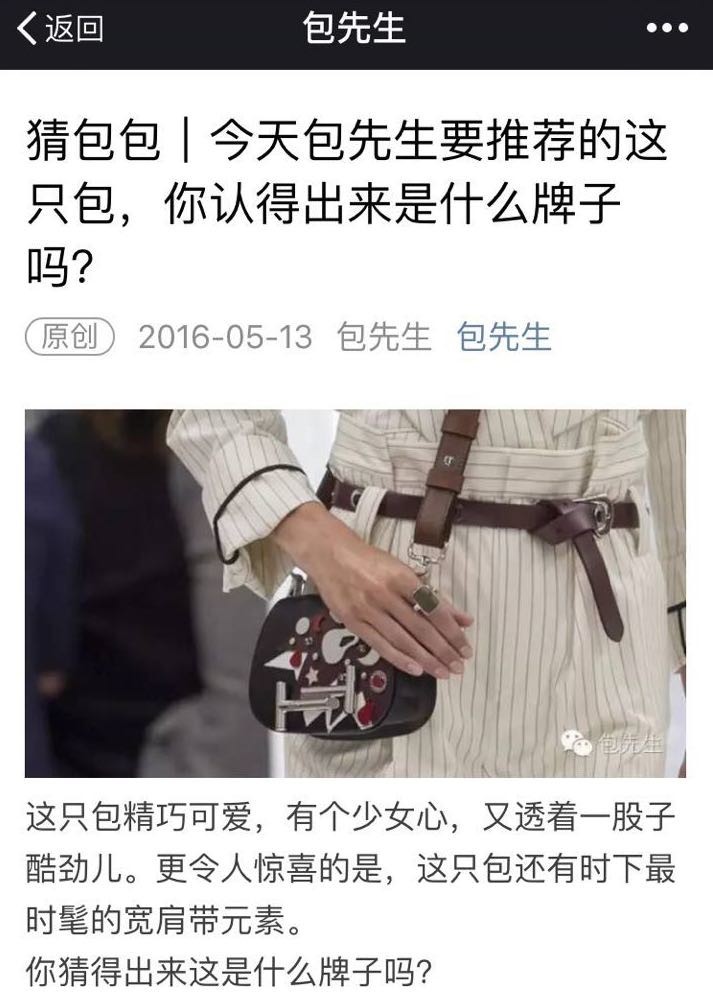 从全网的搜索来看,Tod’s品牌在各个传统的门户时尚频道和垂直时尚网站(譬如YOKA)的曝光还算不错,而在微信公众平台的一众大V(包括Vogue,Elle,芭莎的微信订阅号)中,2016年2月27日有一大波报道,5月份包先生有一篇。其他就很难找到了。