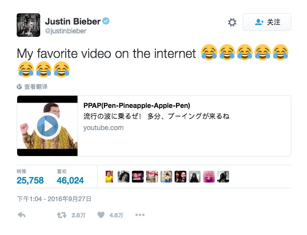 不知道今年的日本年度流行语,会不会就是Pen Pineapple Apple Pen呢?