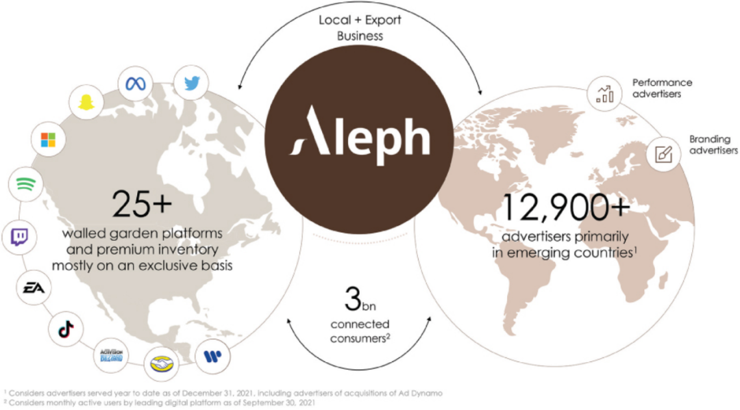 2020年才成立的Aleph Holding, Inc.在7月成功登录纽交所,它的总部在美国迈阿密,是一家名为 IMS Internet Media Services 的公司的最新版本,其定位是为新兴国家的技术平台提供广告分发服务。