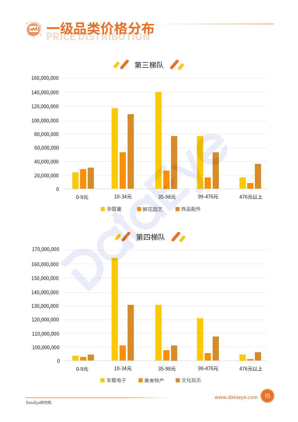 各品类“高价”商品逐步增多:低客单价商品多作为运营策略的秒杀款来吸引用户,随着市场经济的稳步发展,人们的消费需求从过去的“从无到有”到现在的“从有到精”家居家装、饰品配件、服装配饰等品类商品价格逐步提升,476元以上商品增多。