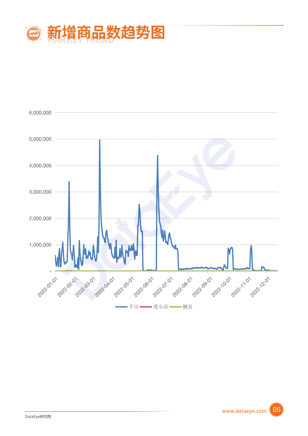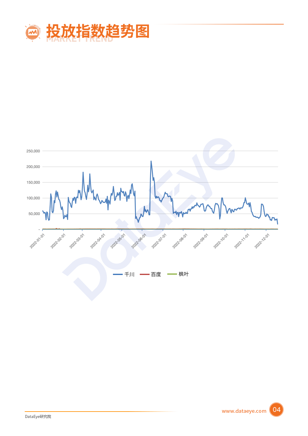 DataEye监测到截止至2022年12月底千川、百度、枫叶三个平台累计投放去重素材量约为2780万组,整体来看,行业总体向好,但素材面临创意不足、同质化严重等问题。