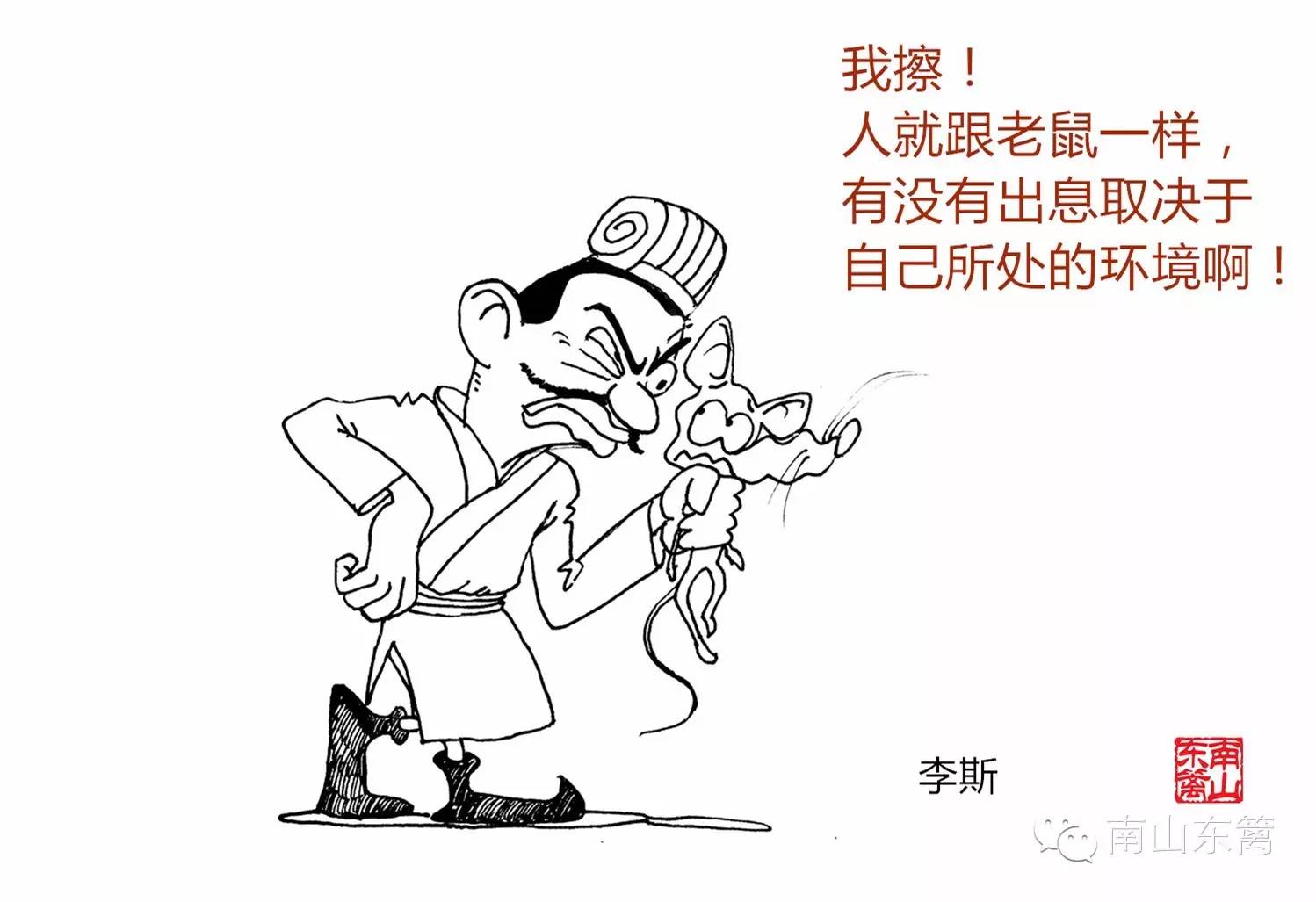 楚国人李斯,年轻时是县里基层公务员。有一天他发现:厕所的老鼠吃的是翔,一看有人来了就慌忙逃窜。
