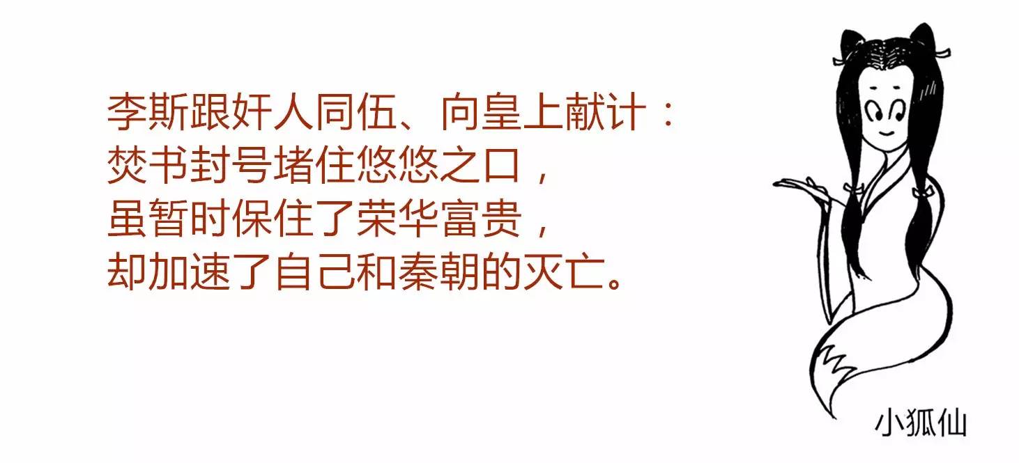秦始皇三十四年,李斯给秦始皇上书说:“现在,有老百姓瞎B叨叨说过去比现在好,要是不禁止这种情况,皇上的权威就会降低啊!臣请求:除了种菜看病的书,其余的书统统烧掉!诸子百家不是有千万粉丝么?不能让他们得瑟!”