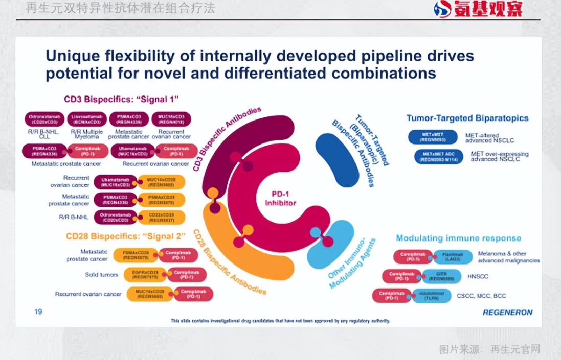 目前,再生元致力于双抗研发,在其管线中治疗前列腺癌、卵巢癌、实体瘤、血液肿瘤的双抗疗法,正处于早期临床试验阶段。