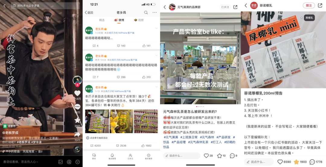 图片来源:老板罗成、老乡鸡、元气满满的品牌部、菲诺椰乳