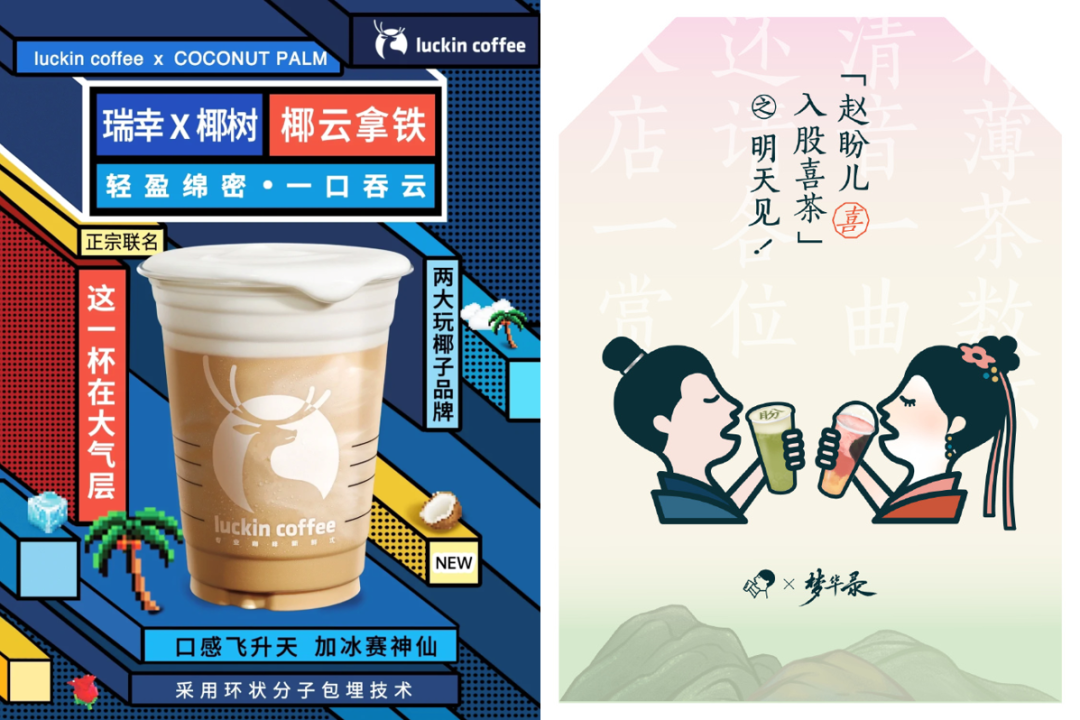 另外,以大热剧《梦华录》为代表的影视IP联名喜茶、奈雪的茶两大茶饮品牌,开辟了IP联名的新领域。而喜茶不仅以联名特调、创意周边、主题店、快闪等多种形式融合了剧中元素,为剧粉带来线下的沉浸式观剧体验,引起自发分享,全国上线的两款产品更是首日卖出近30万杯,可谓是声量销量双丰收。