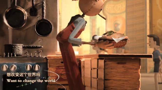 这部动画看完之后,就像台词一样,还是正能量满满的治愈系风格,全篇故事和创意都很棒,厉害之处就是你会发现在这部片子里有两处植入了广告,其实是美国快餐连锁品牌 Chipotle和《疯狂稻草人》游戏的广告片。