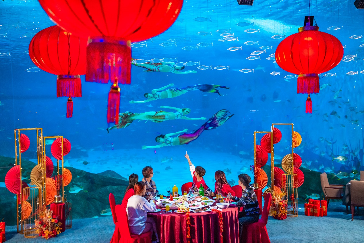 上海海昌海洋公园则开启新年“鲸”奇活动,用多重“鲸”彩贺新春。看焰火、观虎鲸、开盲盒,体验海豚过山车、火山漂流、鹈鹕大冒险等精彩刺激的游玩项目,春节期间,游客们可以一站式感受“吃住玩购娱”的新春游园服务。