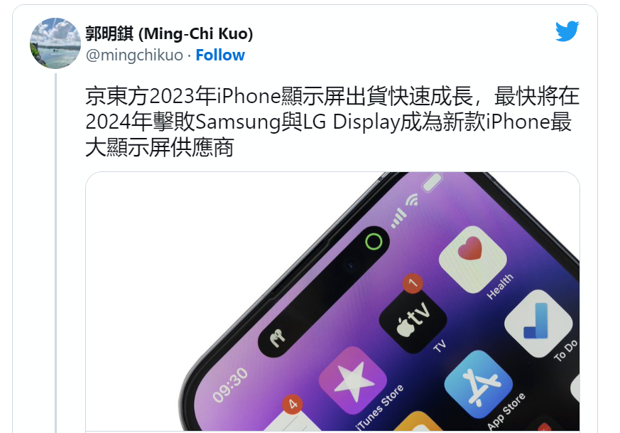 几天前,天风证券分析师郭明錤给出预测称,京东方将取代三星,成为苹果iPhone屏幕最大供应商,而三星也不再是Pro版iPhone屏幕的独家供应商。