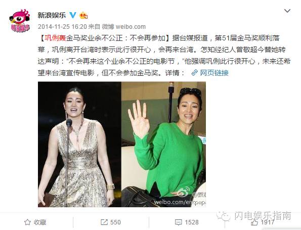 第二是评审不公正疑云。比如第50届金马奖,巩俐的影后旁落,她的经纪人事后发言批评赛制。金马奖评审有17人,那年只有陈冲、高群书、董瑞峰三位是大陆人,剩下台湾人占主流,还有小部分香港和马来西亚人,最后巩俐一票之差败给台湾本土演员。